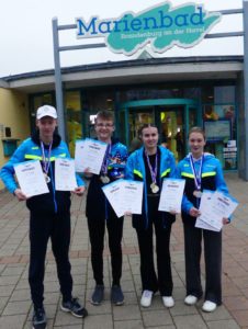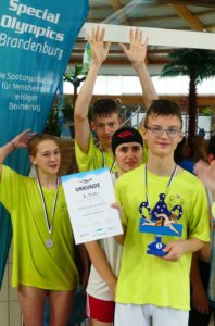 Mit 4 Schülerinnen und Schülern waren wir am 8.11.2025 bei den „Special Olympics“ Meisterschaften im Schwimmen in Brandenburg an der Havel dabei. Mit viel Einsatz erkämpfte sich unsere Mannschaft den ersten Platz in der Freistil-Staffel. Alle 4 Schülerinnen und Schüler errangen hervorragende Ergebnisse, erhielten zahlreiche Medaillen und waren immer in den schnellsten Leistungsgruppen. Wir gratulieren und sagen Dankeschön für die guten Leistungen.