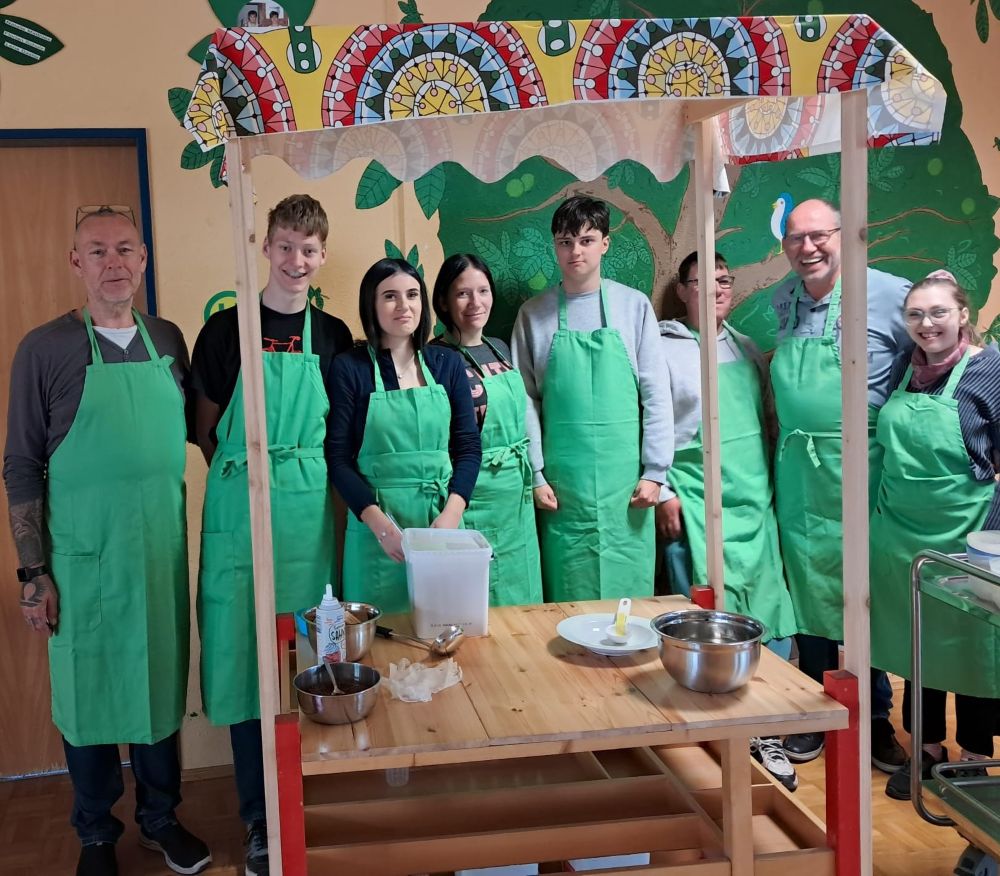 Umrahmt mit der „Pausenmusik“ gab es am letzten Freitag im September in der ersten großen Pause einen Eisbecher für alle Schüler, Lehrer und Mitarbeiter der Kastanienschule. Unsere Schülerfirma hatte fleißig Apfelmus zubereitet und mit viel Freude für alle einen Eisbecher mit Vanilleeis und Apfelmus ausgegeben. Die Freude war riesig, der Eisbecher hatte sichtlich geschmeckt und